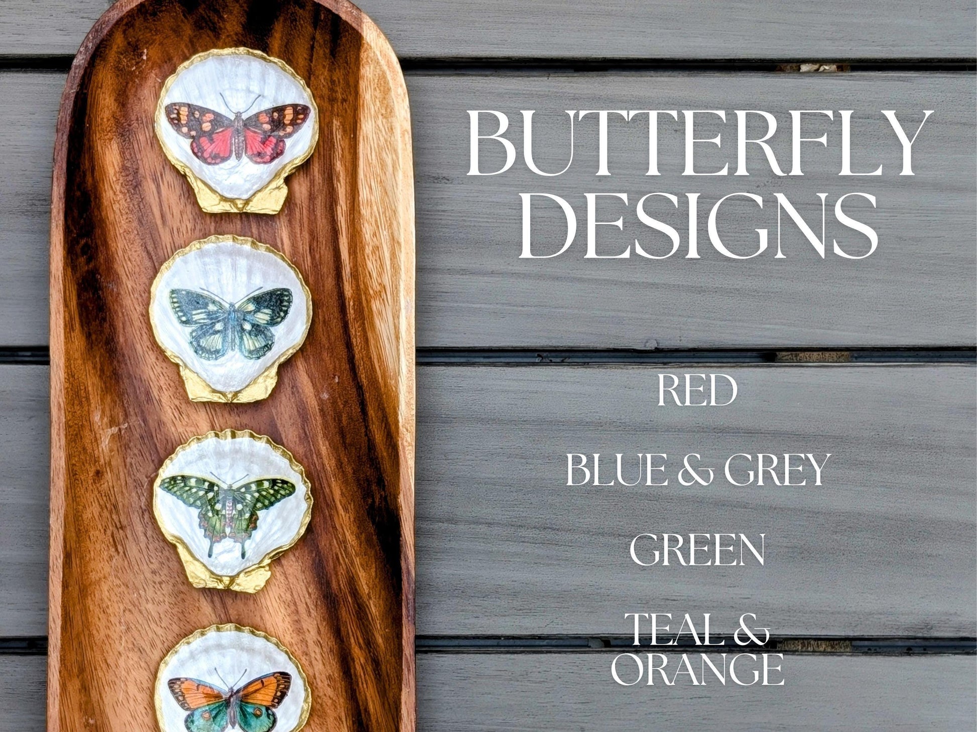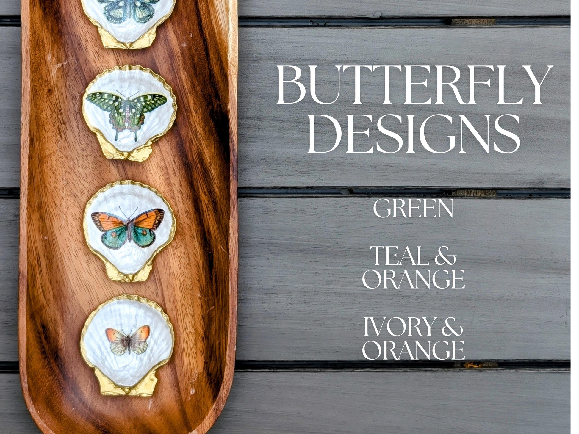 Sea Shell Trinket Dish | Butterflies - Teal & Orange