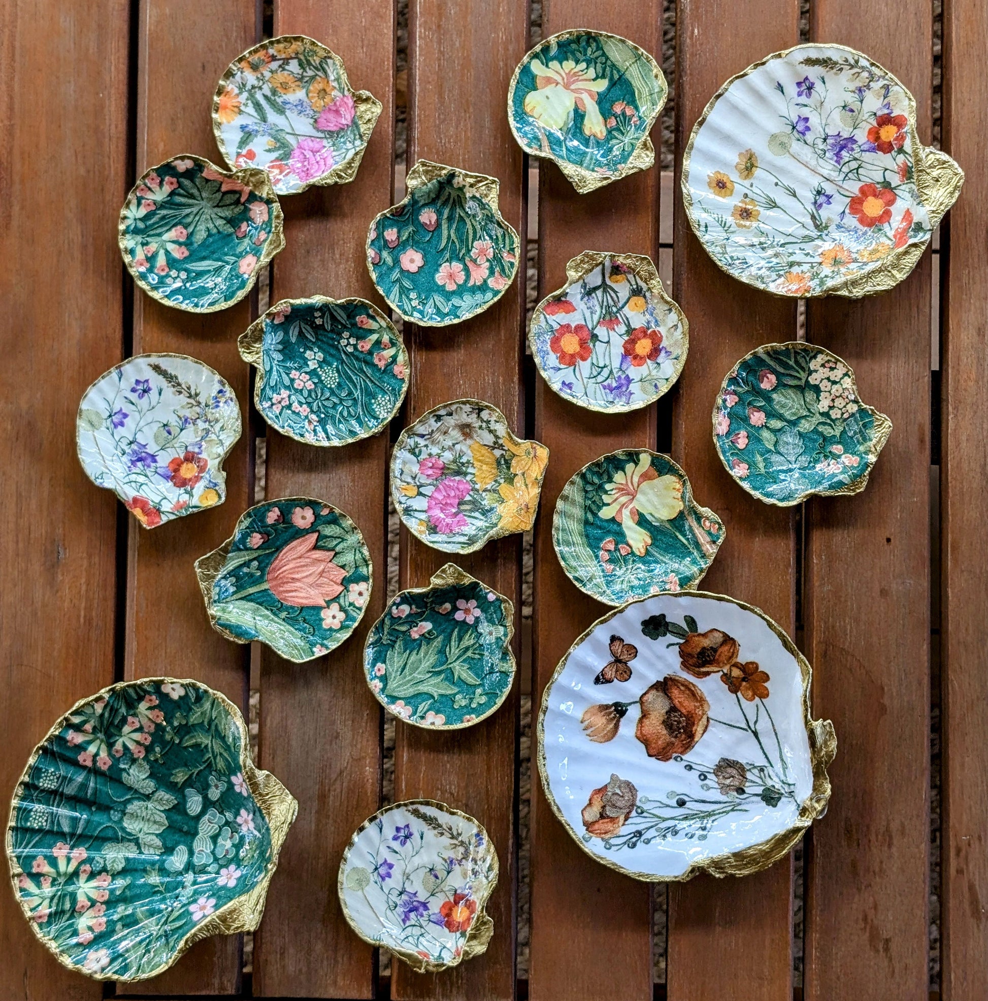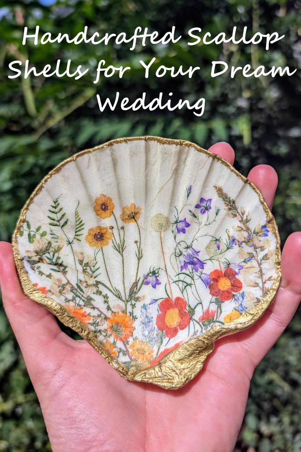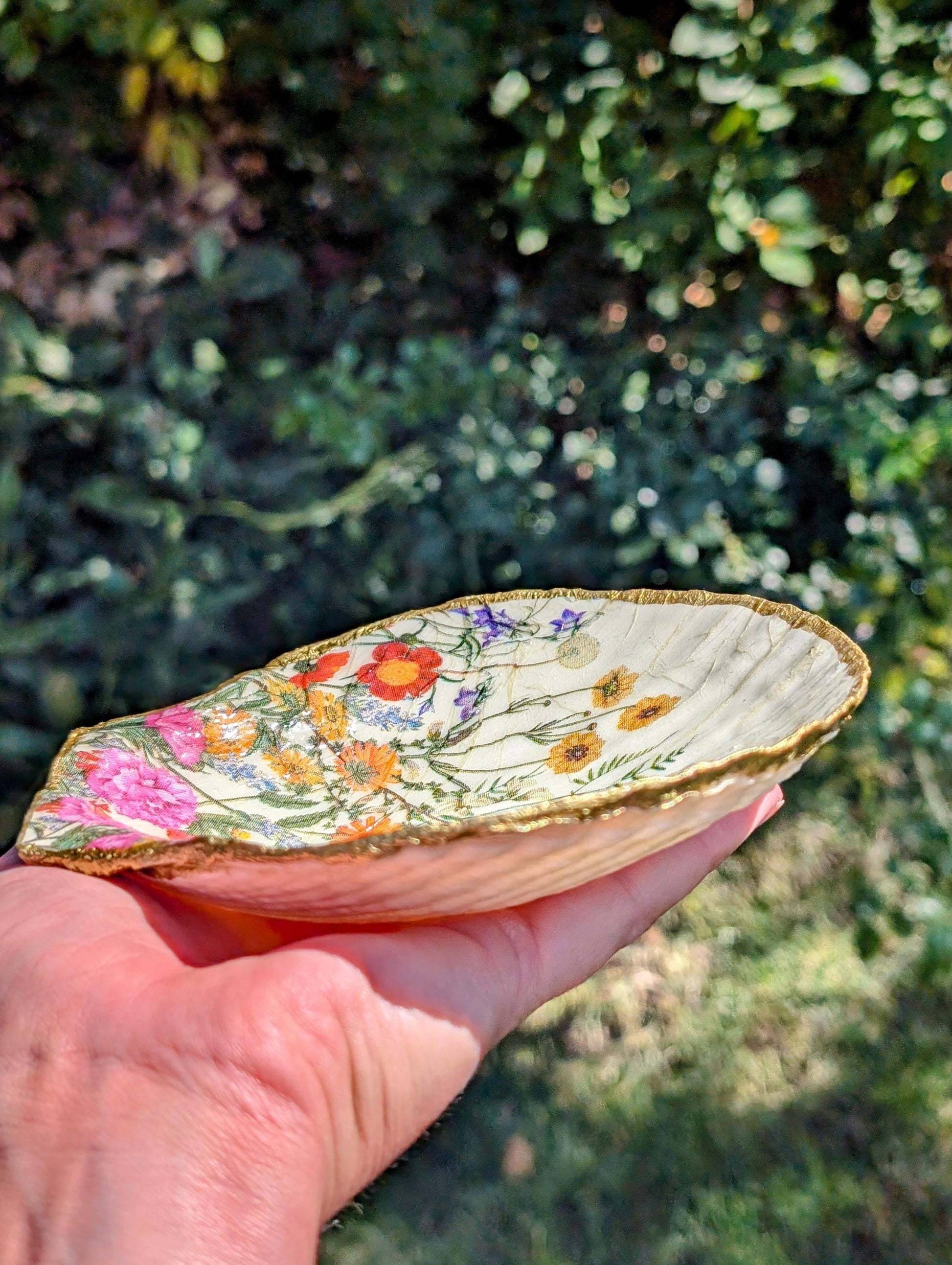 🦪 Handcrafted seashell-shaped dish featuring real pressed wildflowers, adding a touch of nature to your space.