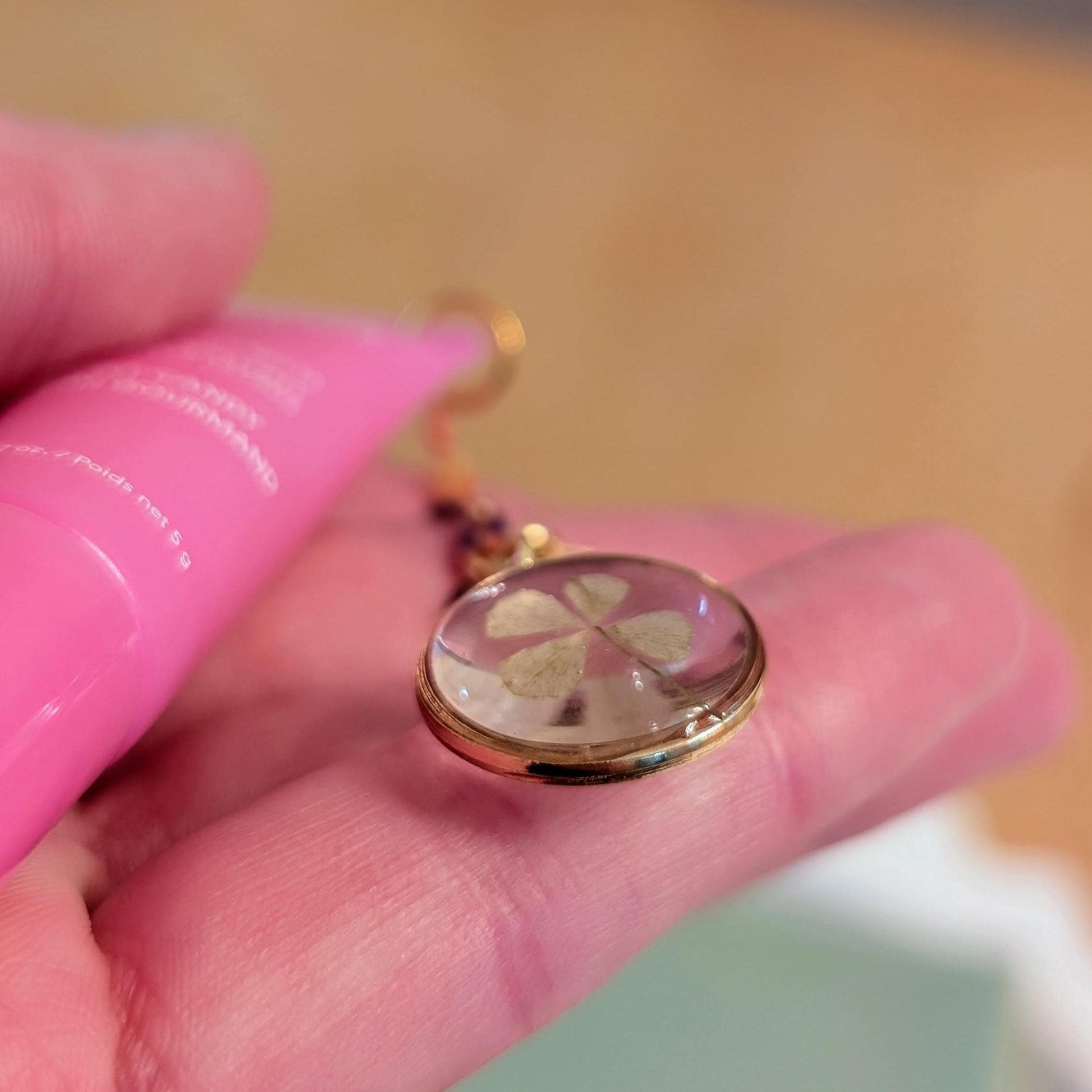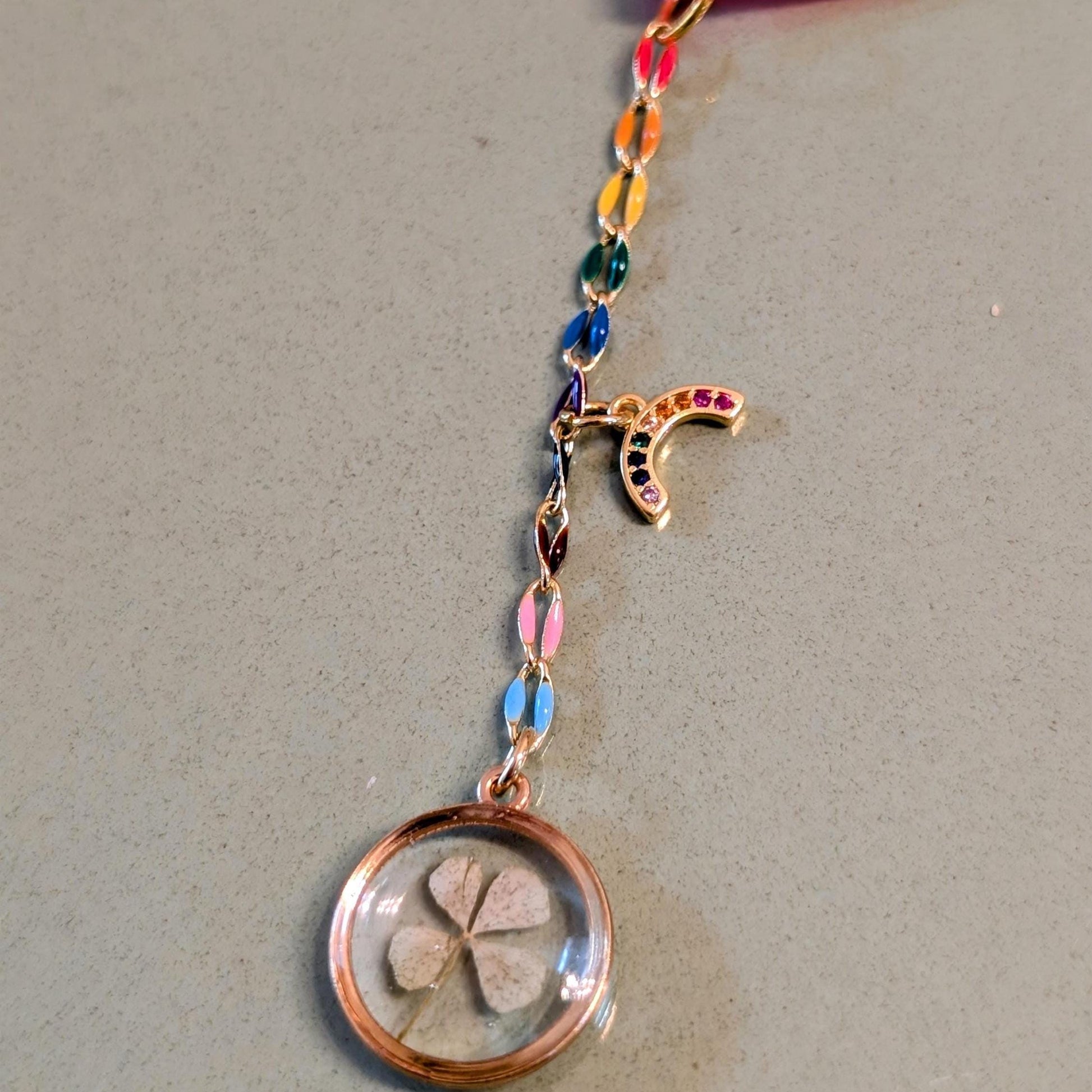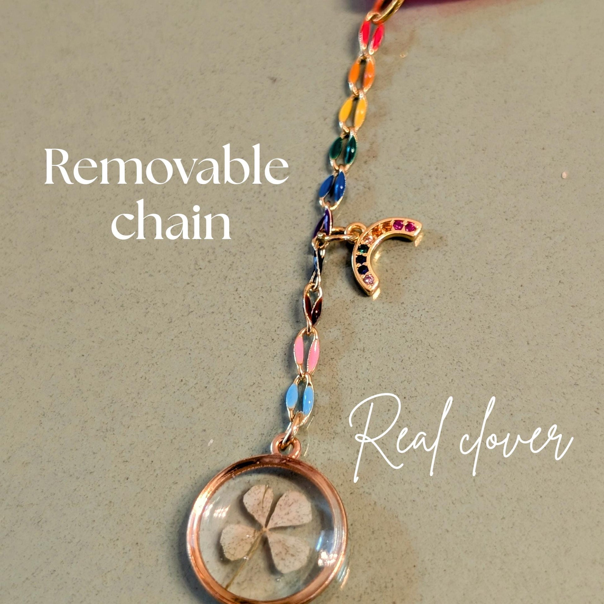 - Features a removable 17mm resin charm with real four-leaf clover