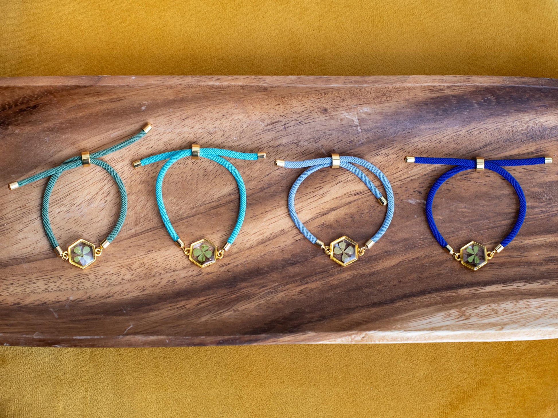 Discover the perfect accessory for nature lovers and outdoor enthusiasts with this real clover adjustable bracelet. Handcrafted with care, the bracelet features a real preserved clover encapsulated in resin and framed by a gold hexagon charm. The vibrant adjustable cord ensures a comfortable fit, making it ideal for everyday wear or special occasions. This nature-inspired bracelet is a meaningful botanical gift for plant lovers and anyone seeking an eco-friendly fashion accessory. Whether you’re exploring the outdoors or adding a touch of nature to your style, this minimalist clover bracelet brings natural beauty to any outfit.
