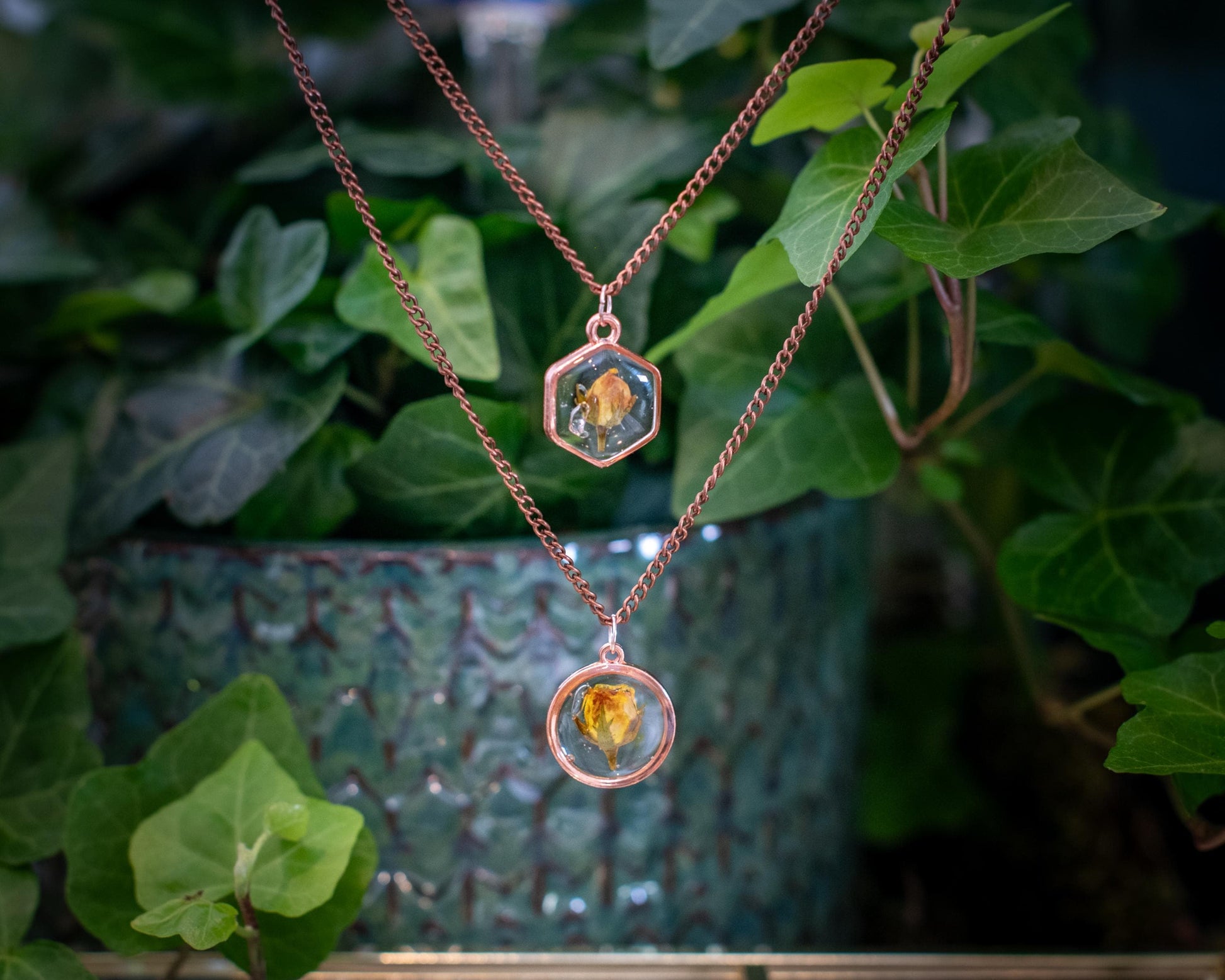 This stunning rose necklace features a real pressed flower beautifully encased in your choice of a rose gold hexagon or circle resin pendant, perfectly capturing natural elegance as shown in the listing image. Handmade with care, this botanical jewelry piece stands out as a meaningful gift for her, blending timeless floral beauty with modern design.