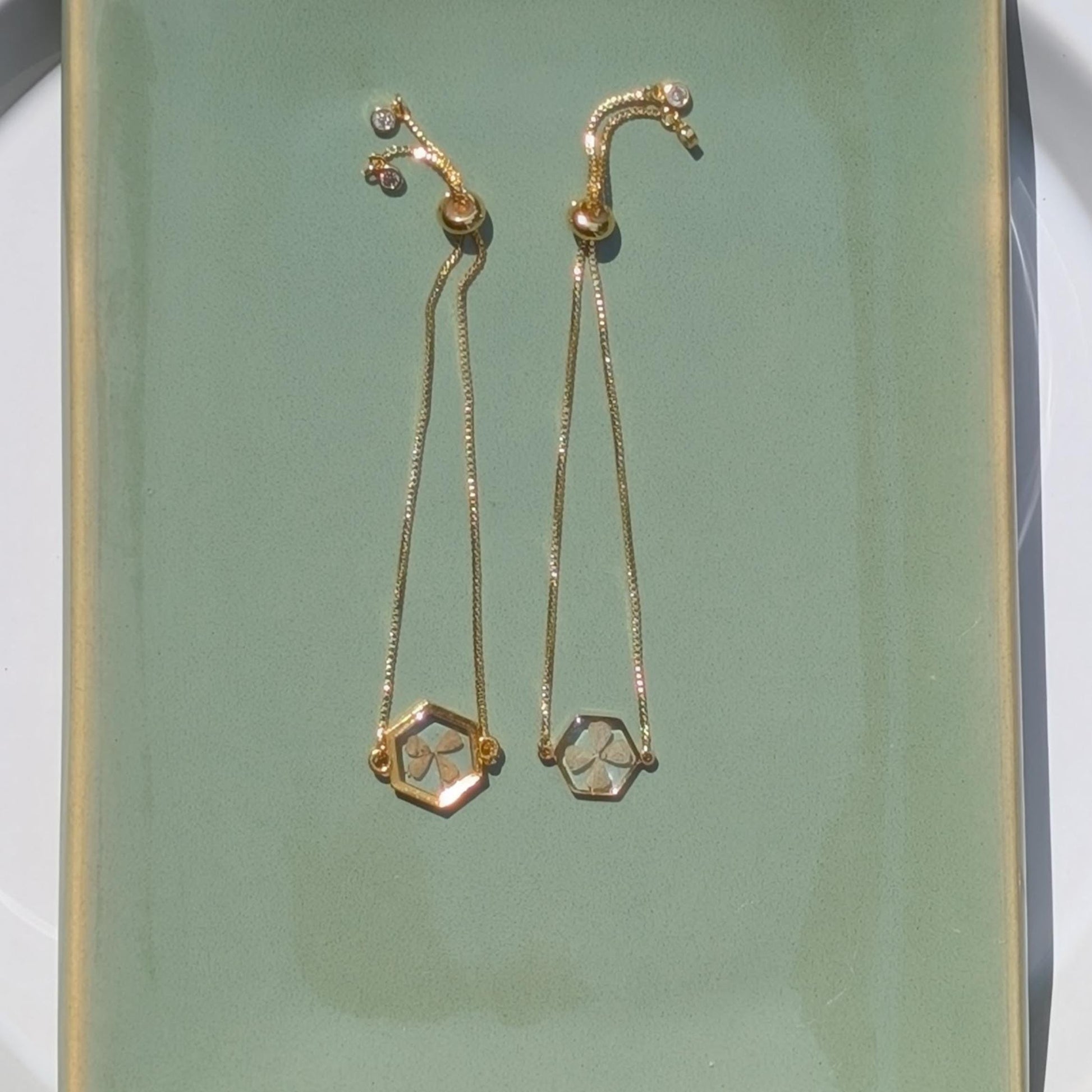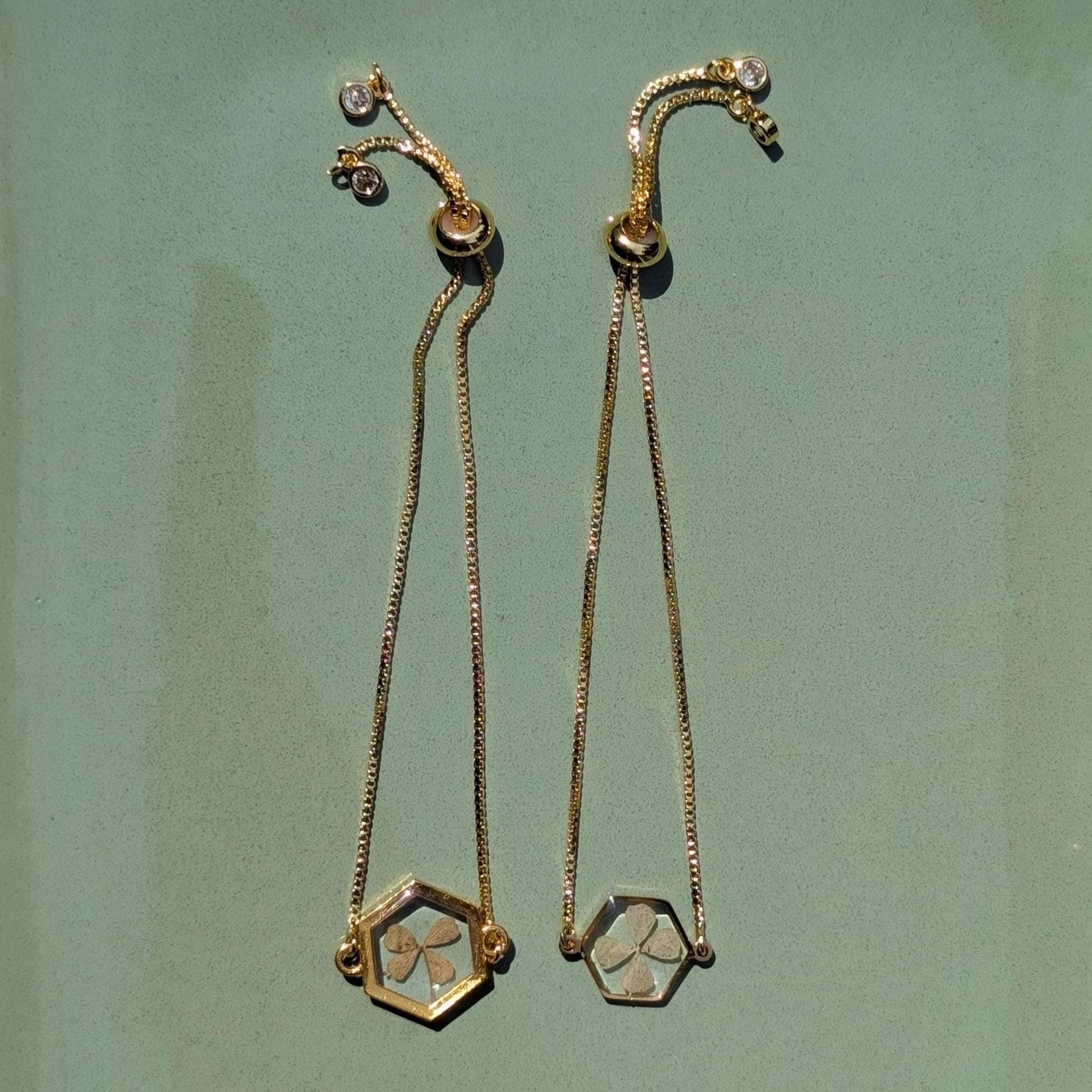 Discover the enchanting allure of nature with this adjustable silver plated four leaf clover bracelet, a perfect luck charm and a charming addition to any jewelry collection. Expertly crafted with care, each pendant features a real four leaf clover preserved inside a clear hexagonal resin, showcasing the natural beauty and uniqueness of every piece. Whether you're seeking to attract good luck or searching for a meaningful gift, this bracelet makes an ideal gift for her or a special treat for yourself. ✨