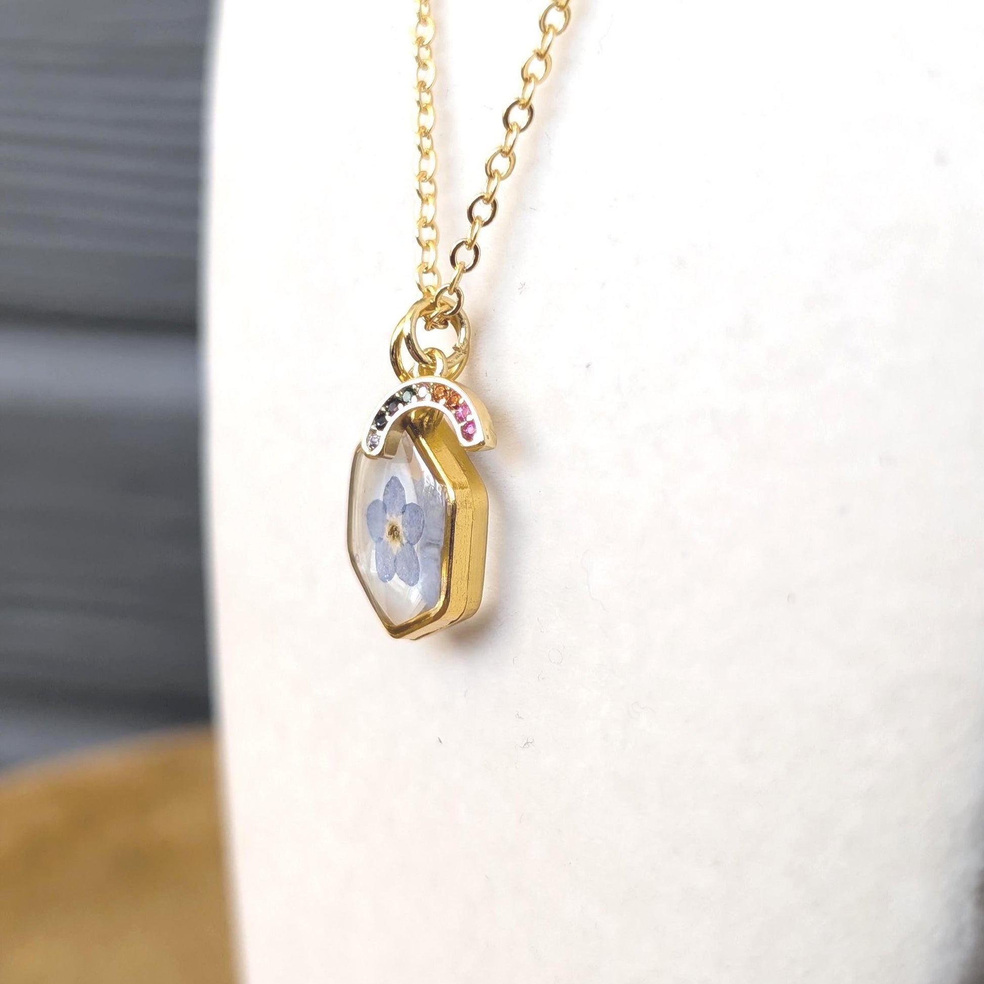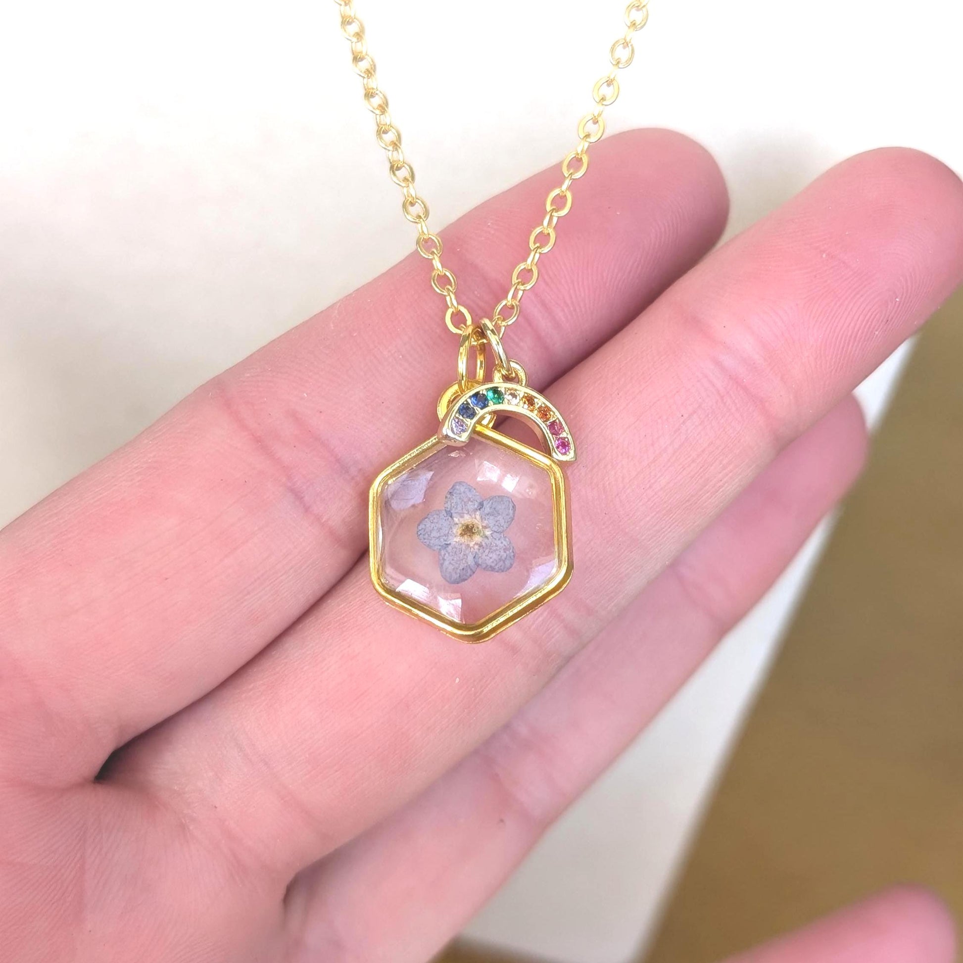 Forget-Me-Not Necklace | Gold Hexagon Rainbow Charm